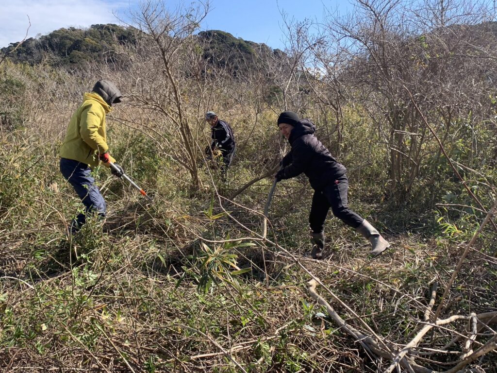 AWA369の顧問であり波佐間地区の副区長さんと、放棄地の刈払い等の