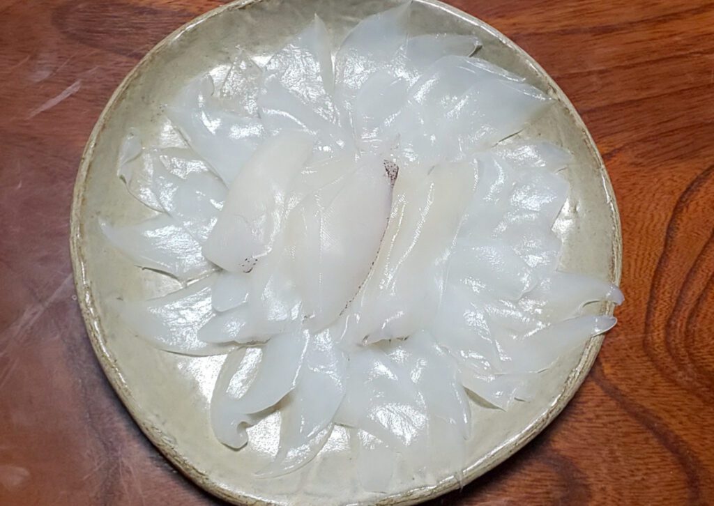アオリイカの新鮮な肝も初めていただいたのですが、臭みのない