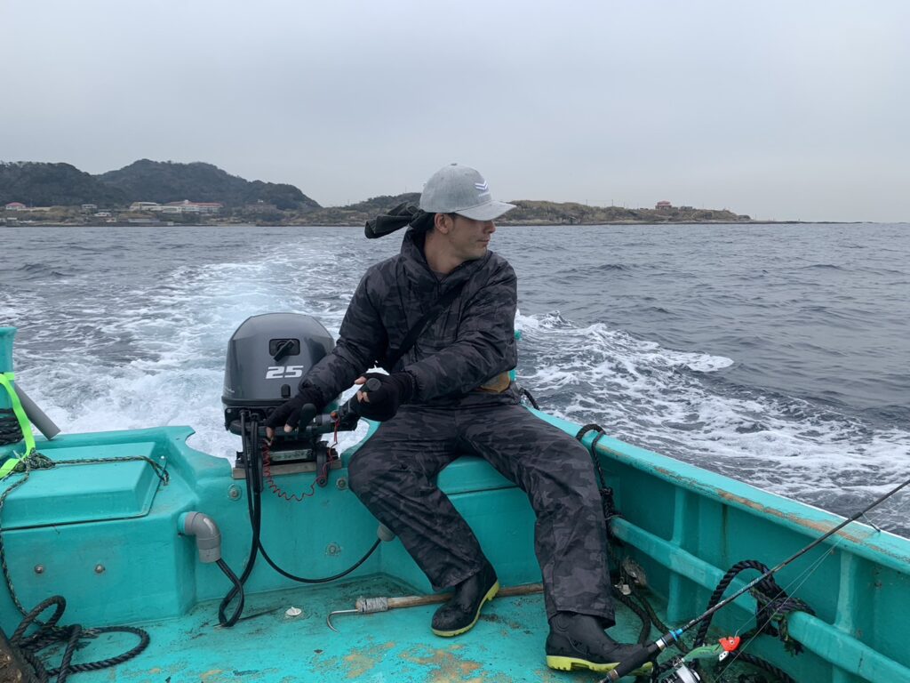 メンバーの漁師さんの伝手で船を借り、船釣りしました。